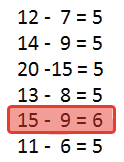 | 12 - 6 + 7 | 70 - 0 + 9 | 17 - 9 |