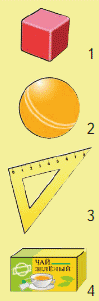 Коробка с зеленым чаем. Это продукт питания, а остальные фигуры - геометрические объекты.