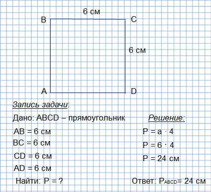 15. Найди периметр квадрата, длина стороны которого 6 см.