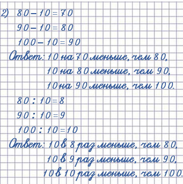 2) На сколько 10 меньше, чем 80; 90; 100?