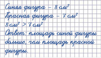 8 см2 > 7 см2, значит, площадь синей фигуры больше, чем площадь красной фигуры.