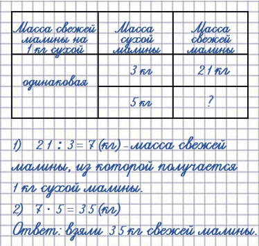 5. Из 21 кг свежей малины получается 3 кг сухой. Сколько взяли свежей малины, если получили 5 кг сухой?