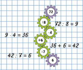 | (72 - 40) : 4 = 32 : 4 = 8 | (48 - 40) : 4 = 8 : 4 = 2 |