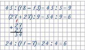 63 : 9 = 7  (27 + 27) : 9 = 6