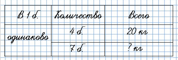1) 20 : 4 = 5 (кг) - в одной банке.