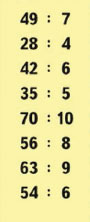 1) 7, 14, 21, 28, 35, 42, 49, 56, 63.