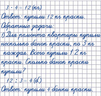 5. Для ремонта квартиры купили 4 банки краски, по 3 кг каждая. Сколько килограммов краски купили?