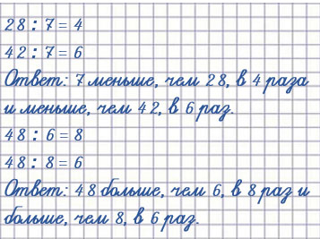 27. Во сколько раз 7 меньше, чем 28? чем 42? Во сколько раз 48 больше, чем 6? чем 8? На сколько 74 больше, чем 20? чем 12? чем 4? На сколько 18 меньше, чем 40? чем 28? чем 80?