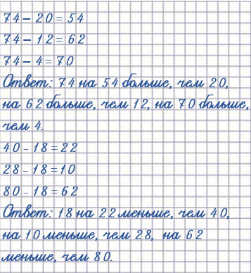Чтобы узнать, на сколько одно число больше или меньше другого, нужно из большего числа вычесть меньшее.