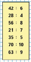 | 35 + 15 : 5 + 2 | 42 : 6 • 7 | 63 : 7 • 5 |