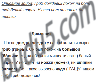 После дождя у нашей калитки вырос гриб. Он был похож на большой белый шарик. У него нет ни ножки, ни шляпки. Вот такое выросло чудо! Гриб-дождевик!