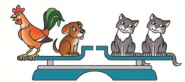 1) Найди массу кошки и массу петуха.