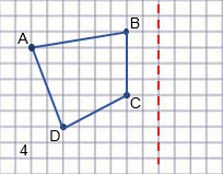Выполни в тетради такой чертеж (рис. 4). Построй четырехугольник, симметричный четырехугольнику АВCD, относительно оси симметрии, проведенной красным. Обозначь его буквами.