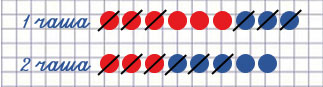 Вычеркиваю на каждой чаше весов одинаковые кружки (красный с красным, синий с синим) пока одинаковые пары кружков не закончатся.
