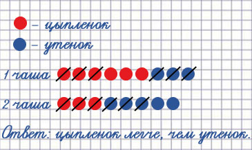Получается, учитывая то, что весы находятся в равновесии, 1 цыплёнок легче, чем утёнок.