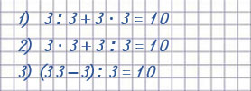 4. Используя знаки действий и, если надо, скобки, запиши число 10 четырьмя тройками.