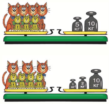 Значит, масса 5 кошек больше, чем масса 10 маленьких котят.