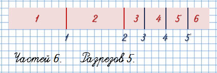 7. Ленту разрезали на 3 части, затем одну из этих частей разрезали ещё на 4 части. На сколько всего частей разрезали ленту? Сколько сделали разрезов?