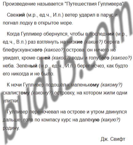 Когда Гулливер обернулся, чтобы в последи., раз взглянуть на низк.. берега блефускуанск.. острова, он ничего не увидел, кроме син.. воды и голуб., неба. Зелён.. берег исчез, как будто его никогда и не было.