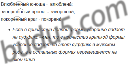 Запишите в составе словосочетаний три полных причастия с суффиксом -енн- или -нн- и образуйте от них краткую форму единственного числа женского рода. Прочитайте вслух, соблюдая правила ударения.