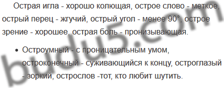 Острая игла, острое слово, острый перец, острый угол, острое зрение, острая боль.
