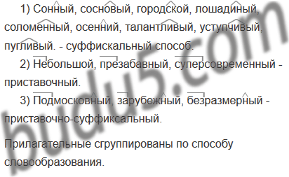 По какому признаку сгруппированы имена прилагательные? Запишите их по группам, выделяя графически словообразующие морфемы.