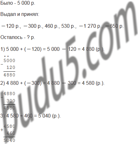 В кассе было 5 000 р. В течение дня кассир несколько раз выдавал и принимал деньги, делая записи: