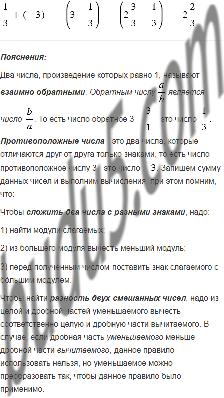Найдите сумму двух чисел, одно из которых обратно числу 3, а второе - противоположно числу 3.