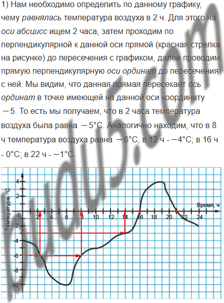 1) какой была температура воздуха в 2 ч; в 8 ч; в 12 ч; в 16 ч; в 22 ч;
