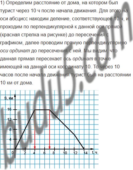 1) На каком расстоянии от дома был турист через 10 ч после начала движения?
