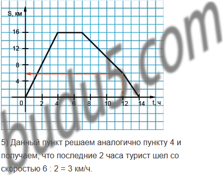 5) С какой скоростью шёл турист последние два часа?