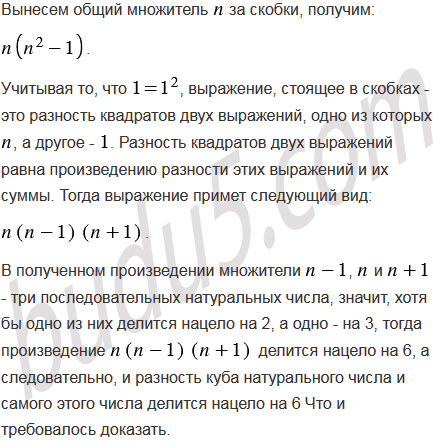 Докажите, что разность куба натурального числа и самого этого числа делится нацело на 6?