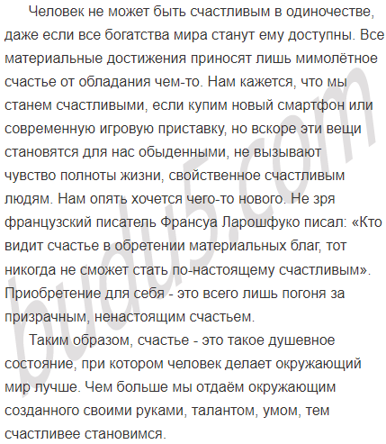 Напишите сочинение-размышление на тему «Что такое счастье?». Включите в него высказывания известных людей, оформленные в виде прямой речи. Используйте в сочинении материал упражнений параграфа и/или подберите примеры самостоятельно.