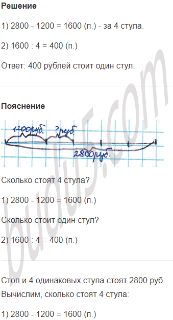 Задание № 5. Стол и 4 одинаковых стула стоят 2800 руб. За стол заплатили 1200 руб. Сколько рублей стоит весь букет?