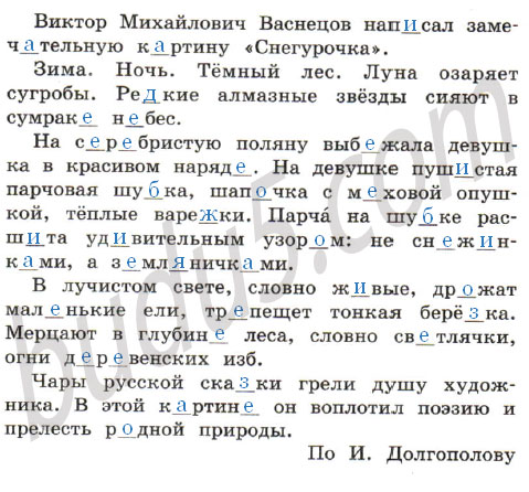 В лучистом свете, словно ж_вые, др_жат мал_нькие ели, тр_пещет тонкая берё_ка. Мерцают в глубин_ леса, словно св_тлячки, огни д_р_венских изб.