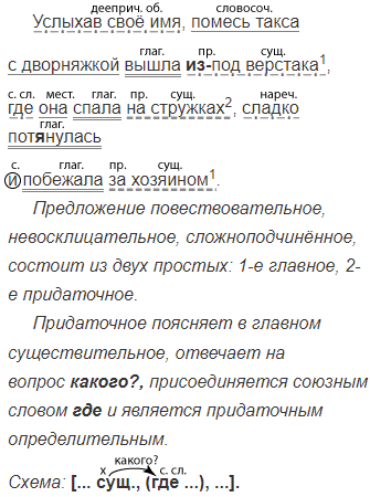 Услыхав своё1 имя помесь такса с дворняжкой вышла (из)под верстака где она спала на стружках сладко пот..нулась и побежала за хозяином.4