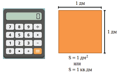 Квадратный дециметр – это площадь квадрата со стороной в 1 дм